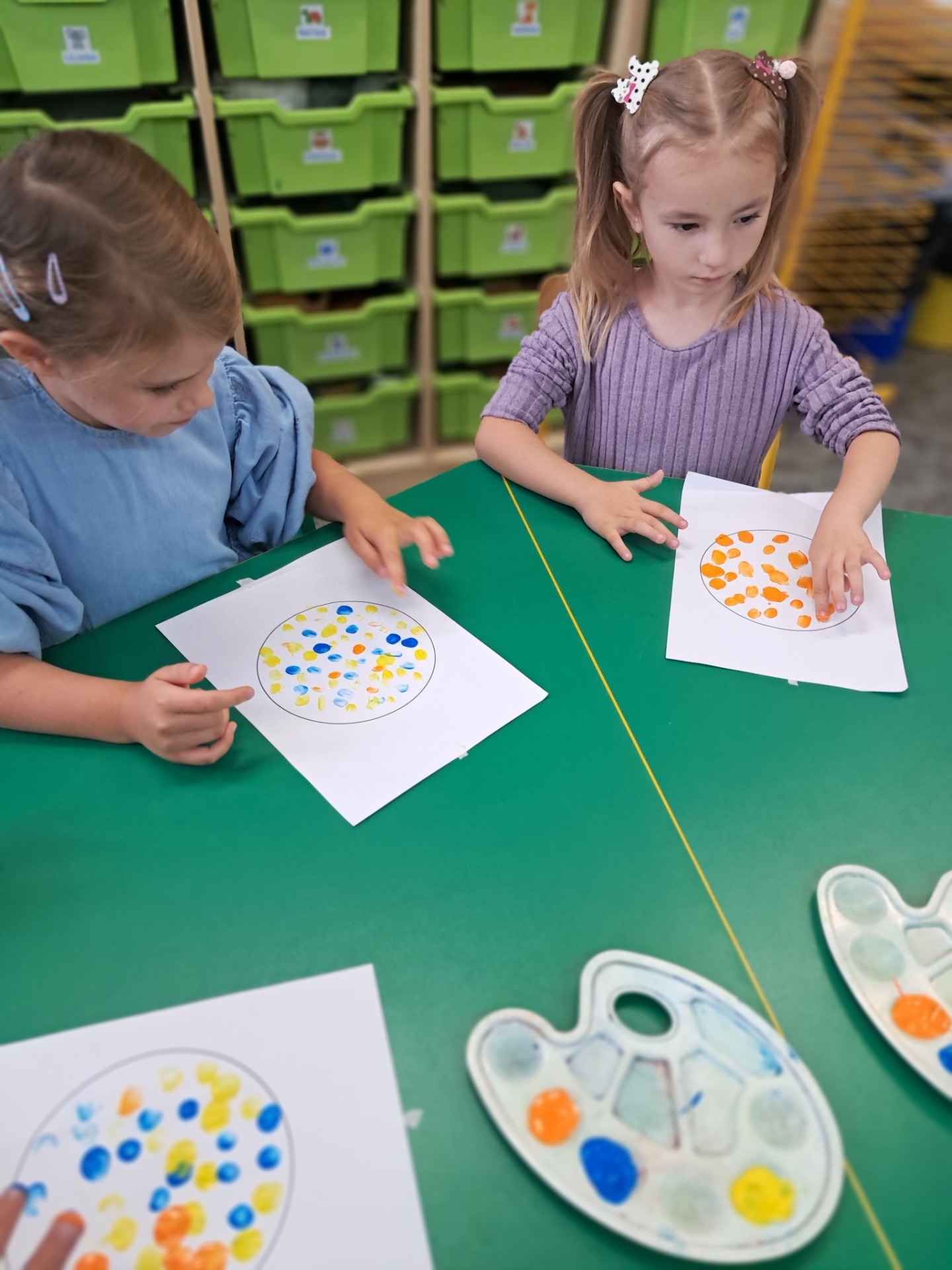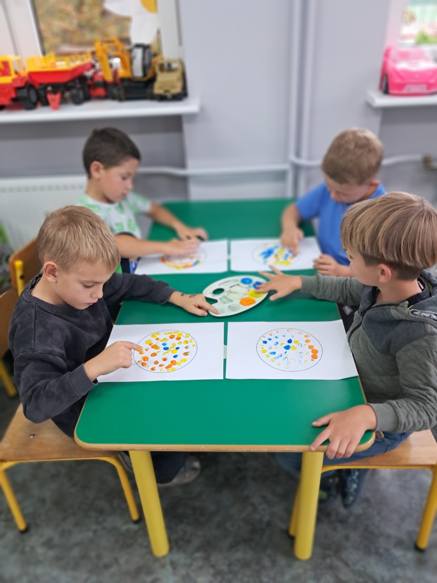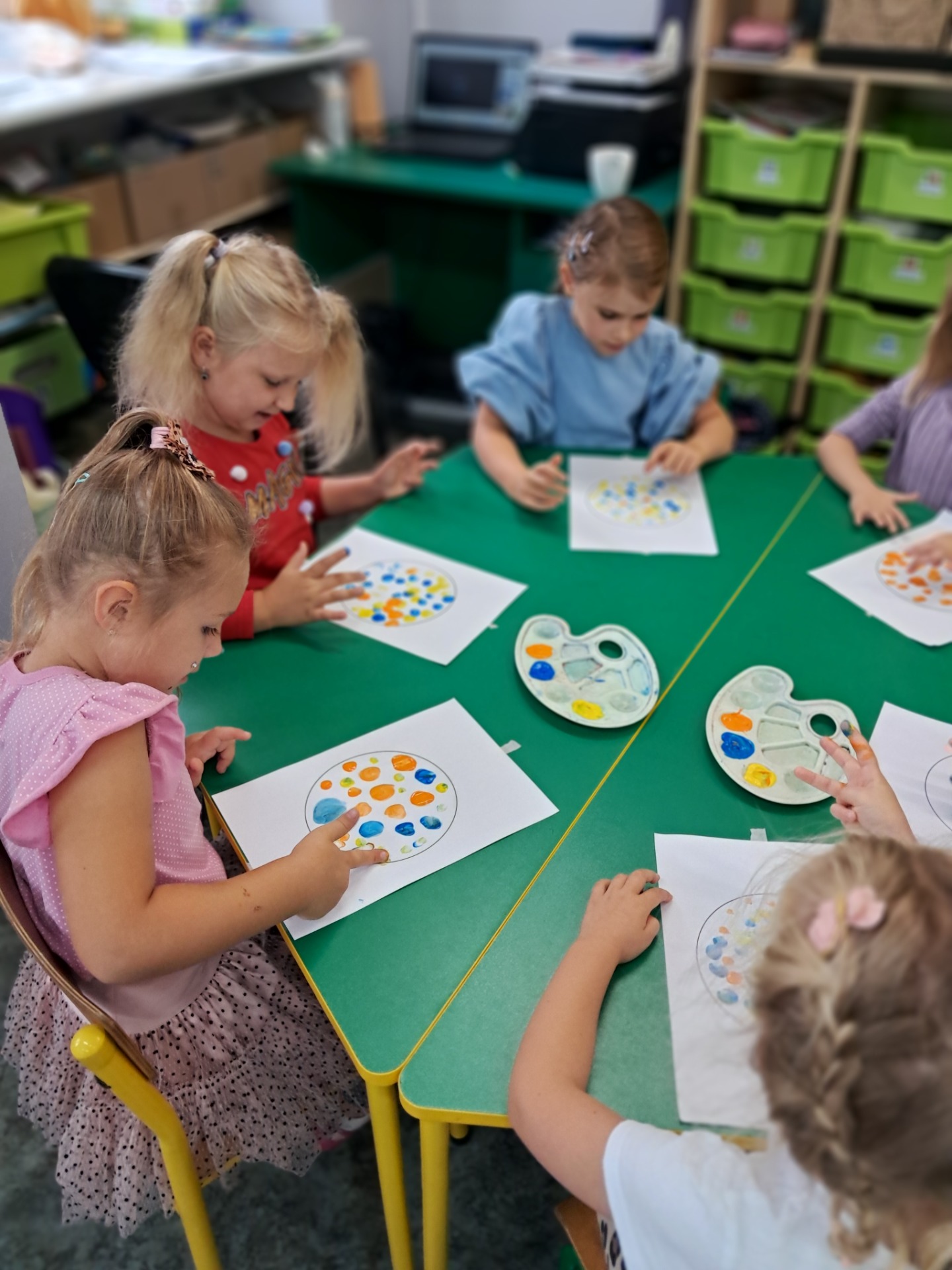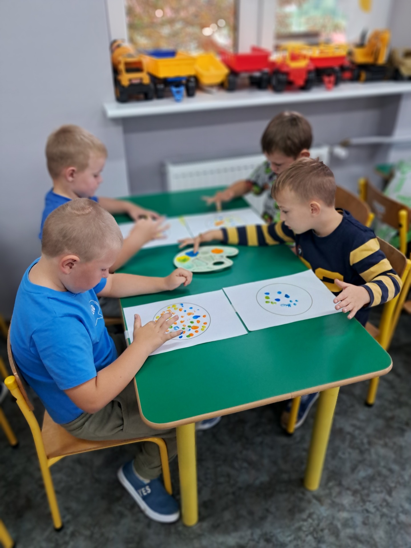 W grupie „Stokrotki” obchodziliśmy Międzynarodowy Dzień Kropki – święto kreatywności i odwagi w odkrywaniu swoich talentów. Dzieci wykonały piękne prace plastyczne malując farbami barwne kompozycje z kropek. Uczestniczyły także w zabawach muzyczno-ruchowych, które dostarczyły im mnóstwo radości i pozytywnej energii. Był to dzień pełen uśmiechu, twórczej zabawy i rozwijania wyobraźni.
