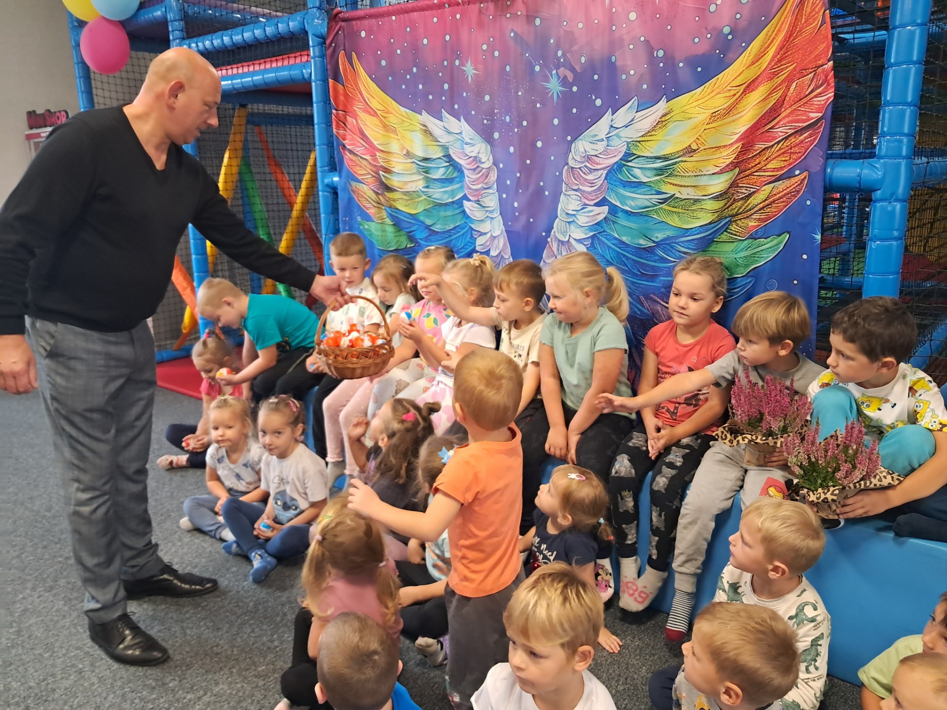 Z okazji Dnia Przedszkolaka dzieci z grupy przedszkolnej Żabki oraz Stokrotki obchodziły swoje święto w wyjątkowy sposób. Przedszkolaki udały się na wycieczkę do Zatoki Przygód w Rydzynie, gdzie czekało na nie mnóstwo atrakcji i wspólna zabawa. Miłą niespodzianką były odwiedziny pana Karola Dembickiego, radnego, oraz sołtysa wsi Rojęczyn, który w imieniu swoim oraz pana Burmustrza Kornela Malcherka obdarował dzieci słodkościami. Gest ten sprawił przedszkolakom ogromną radość . Święto minęło w atmosferze radości, uśmiechu i wspólnej zabawy, a dzieci wróciły pełne niezapomnianych wrażeń.