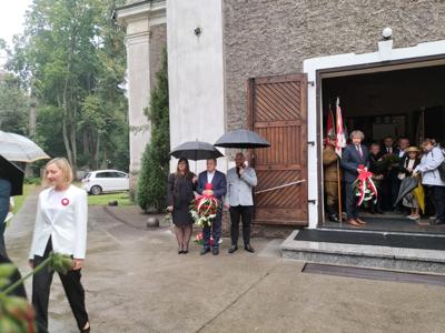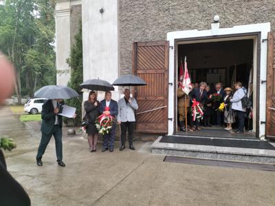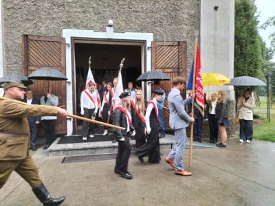 W dniu 15 września delegacja naszej szkoły na czele z p. Dyrektorem wyjechała na Święto Patrona Szkoły do zaprzyjaźnionej z nami szkoły im. Armii Krajowej w Tursku. Najpierw - tak jak u nas uroczysta msza św. celebrowana przez  proboszcza tamtejszej parafii  ks. Piotra Górskiego. Po mszy św. nastąpiło krótkie wystąpienie Dyrektora Zespołu Szkolno-Przedszkolnego p. Pawła Jakubowskiego. Z powodu złej pogody, obficie padajacego deszczu część artystyczna odbyła się w kościele. Pięknymi pieśniami nawiązującymi do Patrona, wierszami i grą na cymbałach w wykonaniu uczniów uświetniono rocznicę zrzutu alianckiego w 1943 roku dla walczących o wolność Polaków. Po części artystycznej nastąpiło złożenie wiązanek kwiatów i zniczy pod Tablicami upamiętniającymi walczących w Tursku, pod Monte Cassino i w okolicach. Nasza delegacja zlożyła również znicz przy kamieniu upamiętniającym dokładne miejsce zrzutu. Następnie poproszono delegacje na krótki poczęstunek. Po złożeniu znicza Delegacja naszej szkoły udała się w drogę powrotną do Kaczkowa.  Dziękujemy wszystkim za umożliwienie nam uczestnictwo w Święcie Patrona w zaprzyjaźnionej szkole.