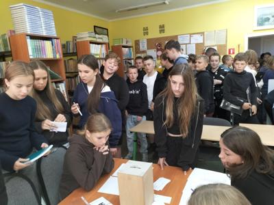 W dniu 16 września odbyły się wybory na Przewodniczącego Samorządu Uczniowskiego. Najpierw kandydaci przedstawili swój program. Zostali wysłuchani przez wszystkich uczniów, którzy mieli okazję zadać pytania. W dniu 16 września odbył się akt głosowania. Uczennice z klasy VII i VIII zaangażowane były w proces liczenia głosów. Zdecydowanie wygrał głosowanie PIOTR TATAREK, który otrzymał 66 głosów, kandydat OLIWIER BUDNY otrzymał 26 głosów, a kandydatka NADIA KOWALSKA 2 ważne głosy. Po ogłoszeniu wyników Piotr Tatarek potwierdził chęć zostania Prewodniczącym szkoły. Gratulujemy.